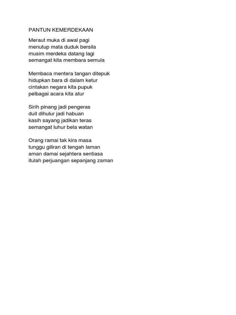 Pantun Kemerdekaan Sekolah Rendah - Sajak Merdeka Pdf